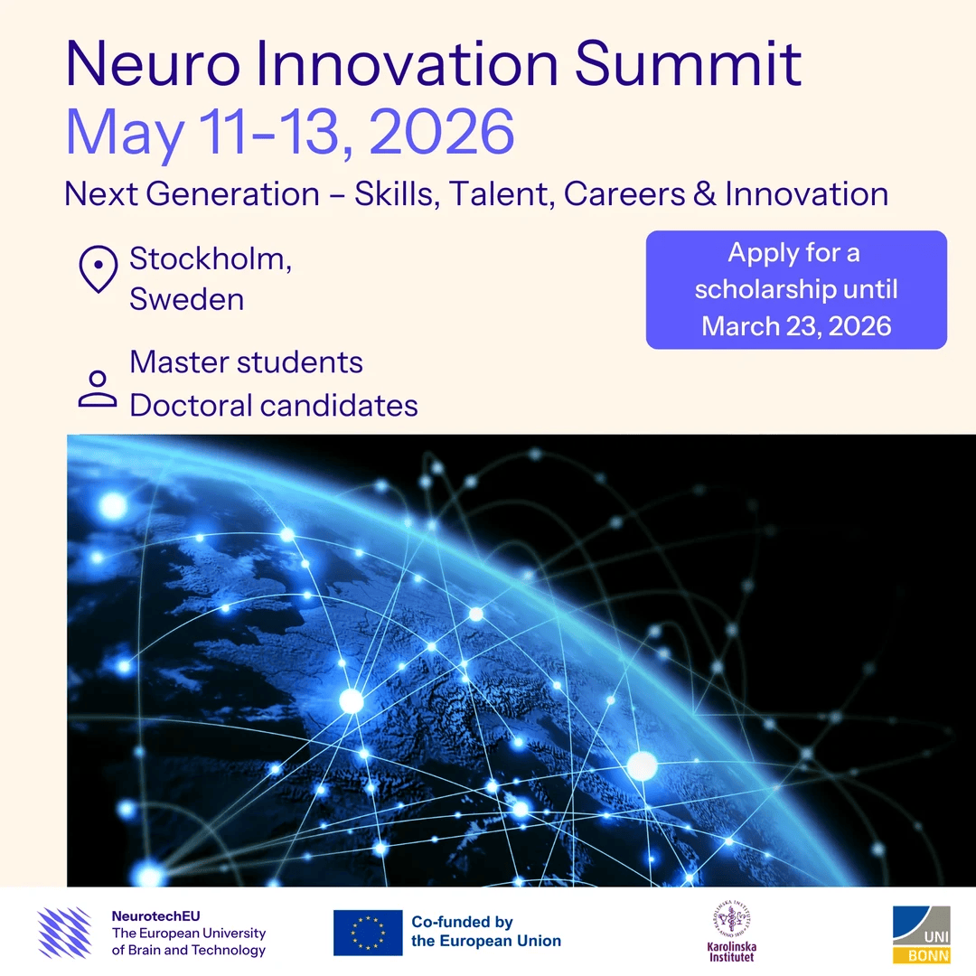 Karolinska Institutet is pleased to announce and invite students to the NeurotechEU Neuro Innovation Summit – „Next Generation – Skills, Talent, Careers & Innovation”, which will take place from May 11–13, 2026, onsite in Stockholm, Sweden.